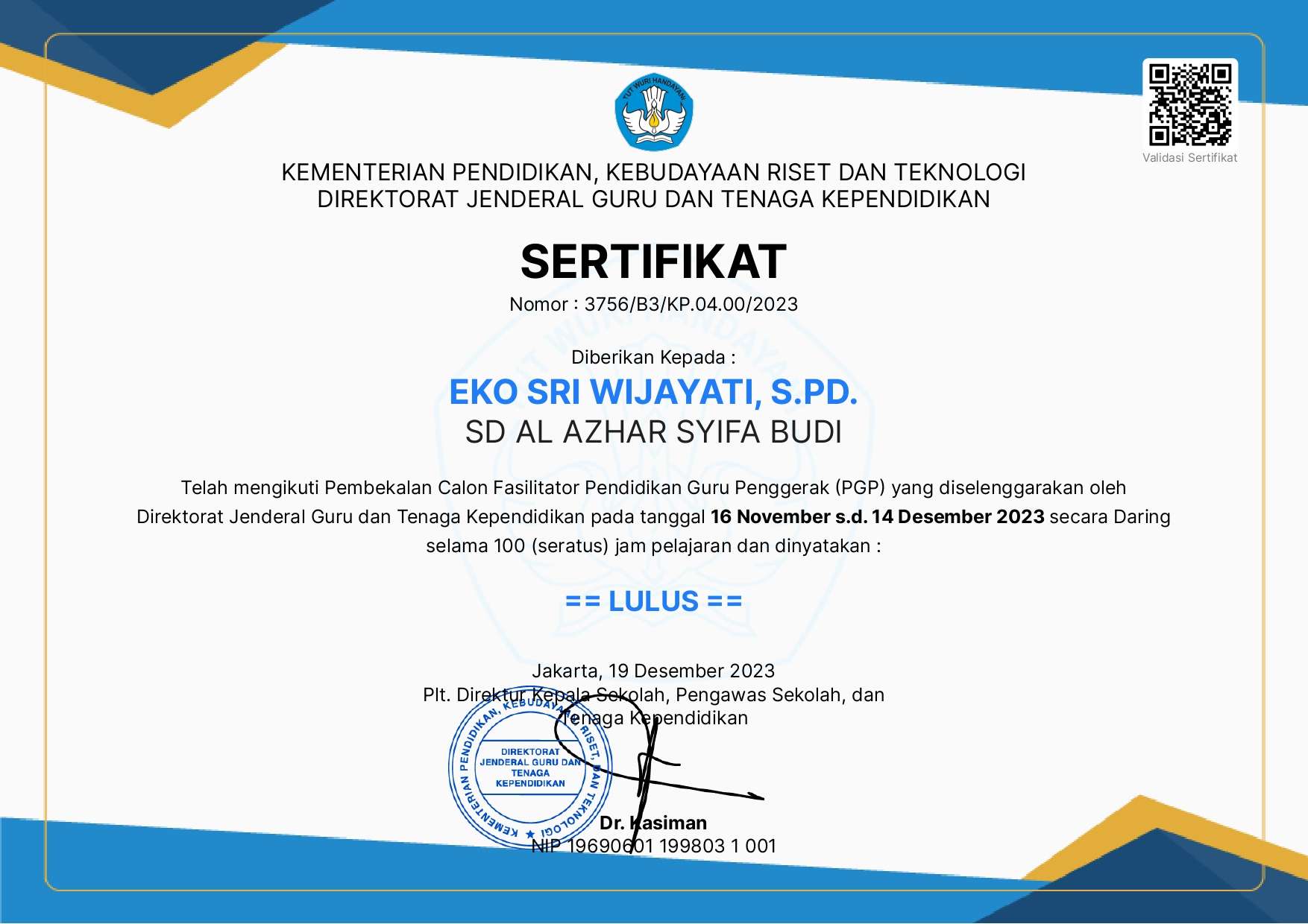 Sebagai Fasilitator Program Pendidikan Guru Penggerak Provinsi Jawa Barat dari Kementerian Pendidikan, Kebudayaan, Riset dan Teknologi Direktorat Jenderal Guru dan Tenaga Kependidikan Balai Besar Guru Penggerak Provinsi Jawa barat.