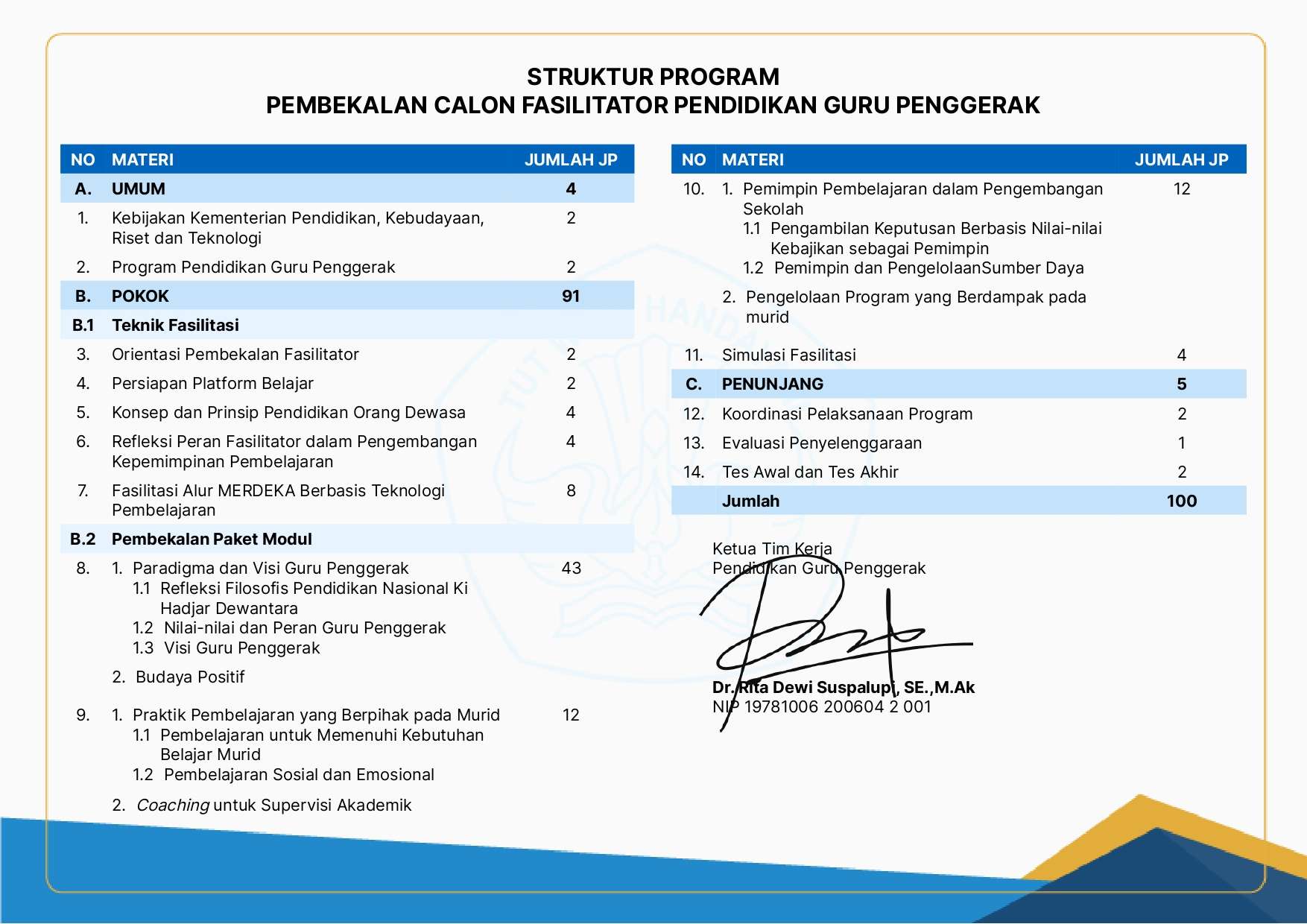 Sebagai Pengajar Praktik dalam Pendidikan Guru Penggerak Angkatan 7 Provinsi Jawa Barat dari Kementerian Pendidikan, Kebudayaan, Riset dan Teknologi Direktorat Jenderal Guru dan Tenaga Kependidikan Balai Besar Guru Penggerak Provinsi Jawa barat.