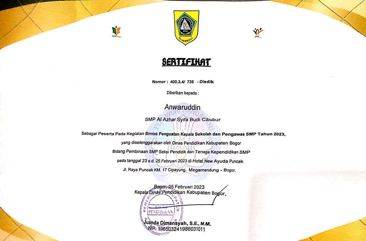 Peserta Bimbingan Teknis Penguatan Kepala Sekolah dan Pengawas SMP Tahun 2023 yang diselenggarakan oleh Dinas Pendidikan Kabupaten Bogor Bidang Pembinaan SMP Seksi Pendidik dan Tenaga Kependidikan SMP