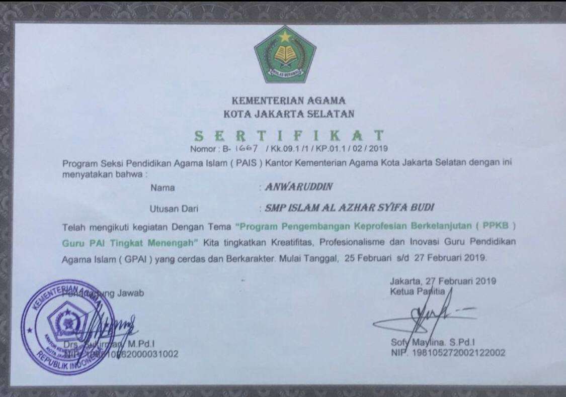 Peserta Kegiatan "Program Pengembangan Keprofesian Berkelanjutan (PPKB) Guru PAI tingkat Menengah" yang diselenggarakan oleh Kementerian Agama Jakarta Selatan