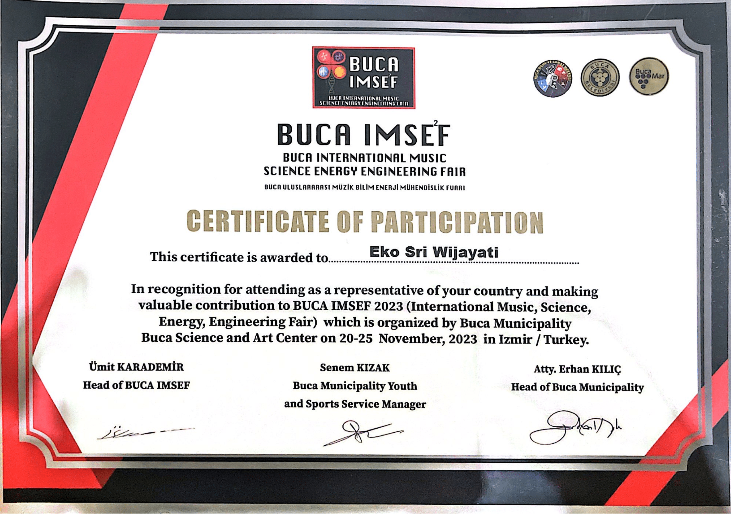 Instruktur olimpiade Internasional BUCA International Music Science Energy Enginering Fair Turkey bidang Biologi dan Fisikameraih 1 Gold Medal, 1 silver medal dan 1 Bronze Medal