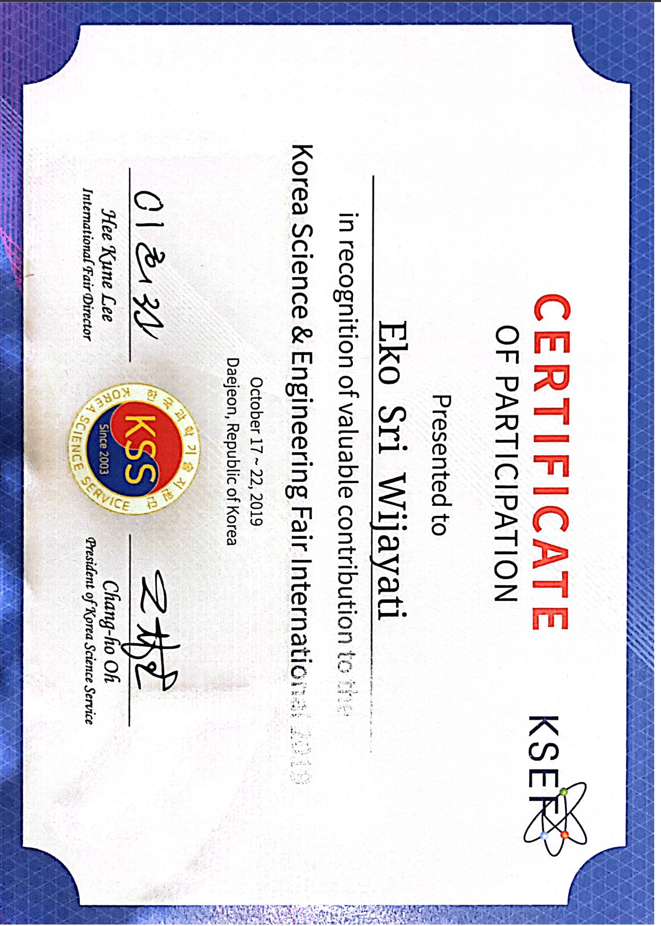Instruktur Olimpiade Internasional Korea Science and Engineering Fair International bidang Biologi dan Fisika Meraih juara harapan pertama